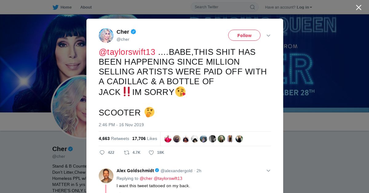 取得元URL: https://twitter.com:443/cher/status/1195835507449589762