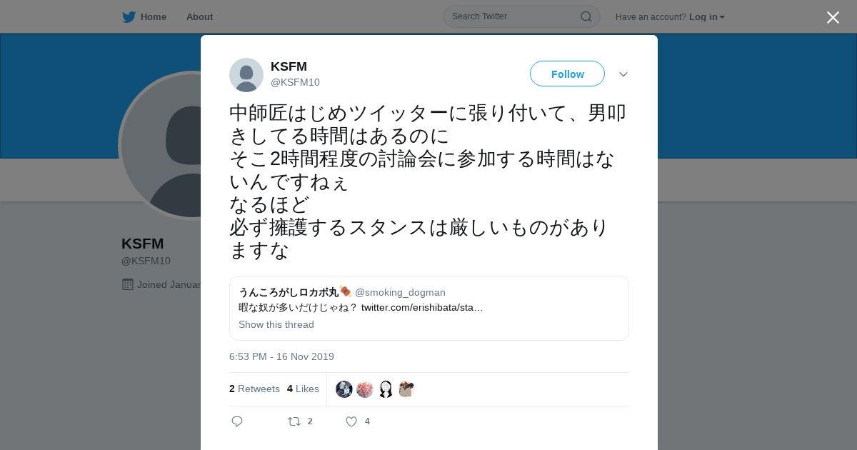 取得元URL: https://twitter.com:443/KSFM10/status/1195897652505796608