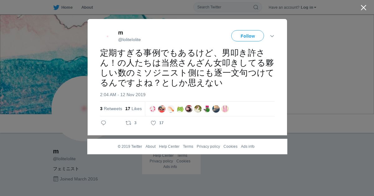 https://twitter.com:443/loliteIolite/status/1194194288017436674