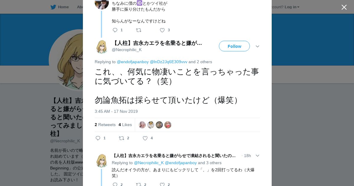 取得元URL: https://twitter.com:443/Necrophilic_K/status/1196031675345457153