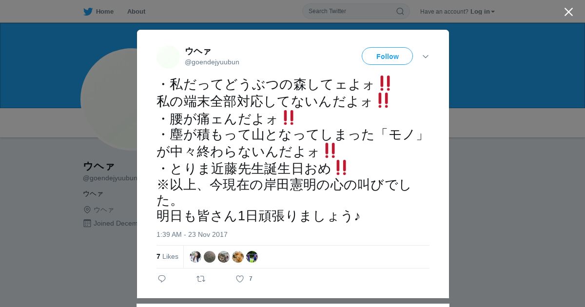 https://twitter.com:443/goendejyuubun/status/933631154116104193?s=21
