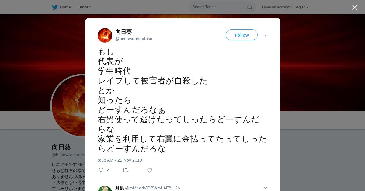https://twitter.com:443/himawarihaotoko/status/1197559908394102785