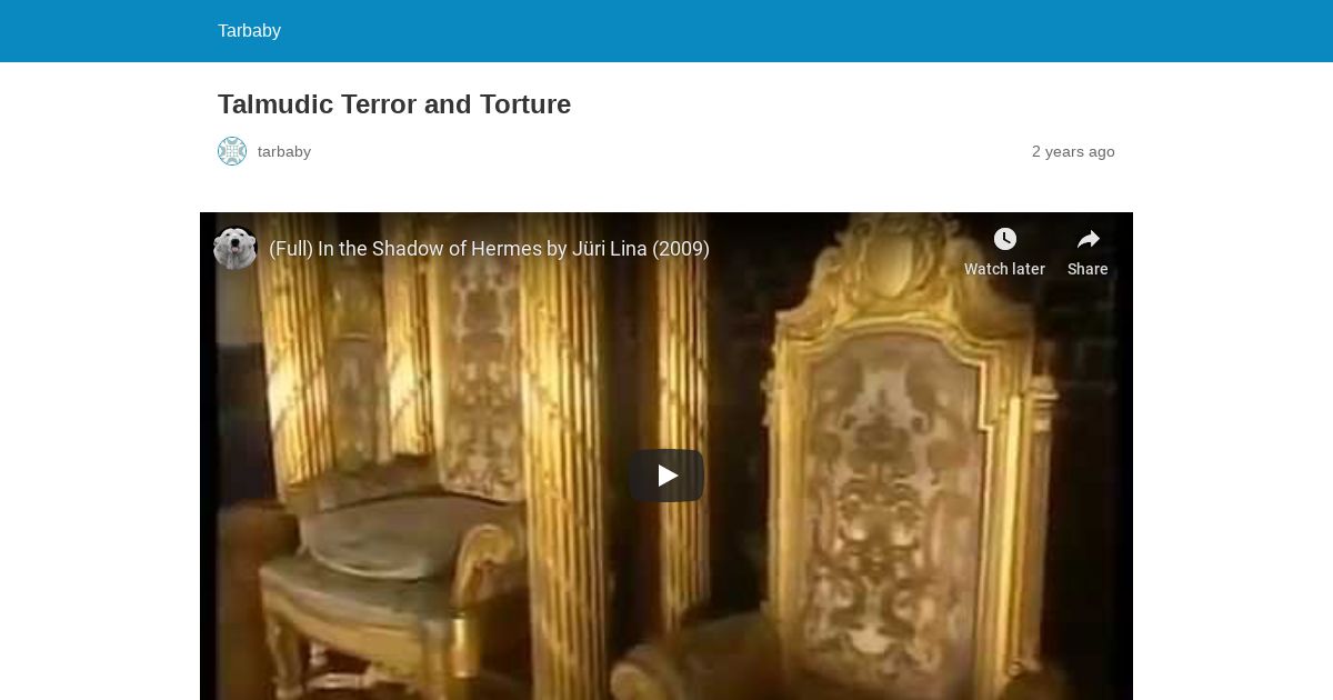 https://tarbaby.wordpress.com:443/2017/08/01/talmudic-terror-and-torture/amp/