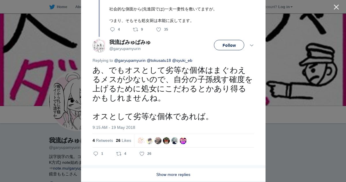 取得元URL: https://twitter.com:443/garyupamyurin/status/997873388373749761