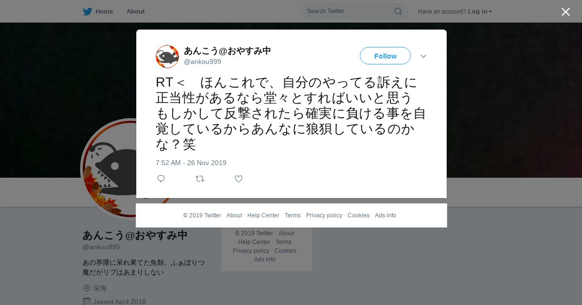 取得元URL: https://twitter.com:443/ankou999/status/1199355322793517057