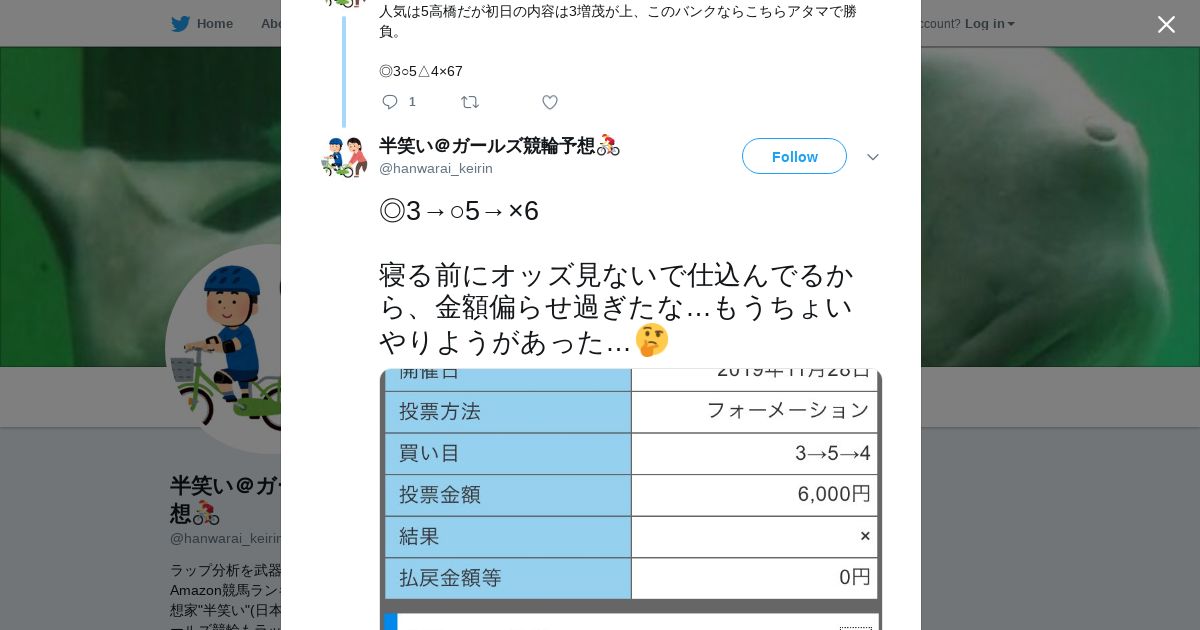 https://twitter.com:443/hanwarai_keirin/status/1199896254123110402