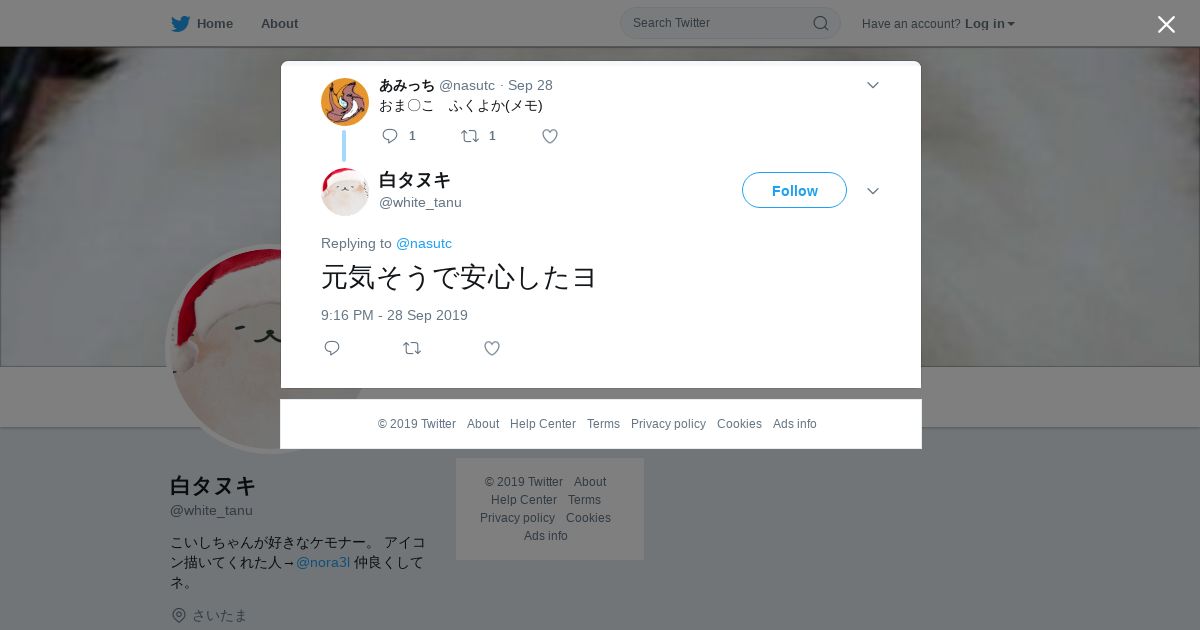 取得元URL: https://twitter.com:443/white_tanu/status/1178161703973879808