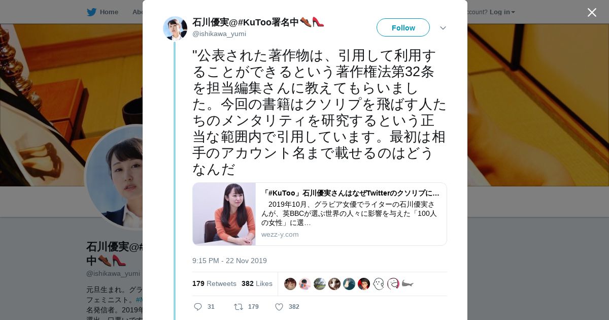 https://twitter.com:443/ishikawa_yumi/status/1198107739777466368