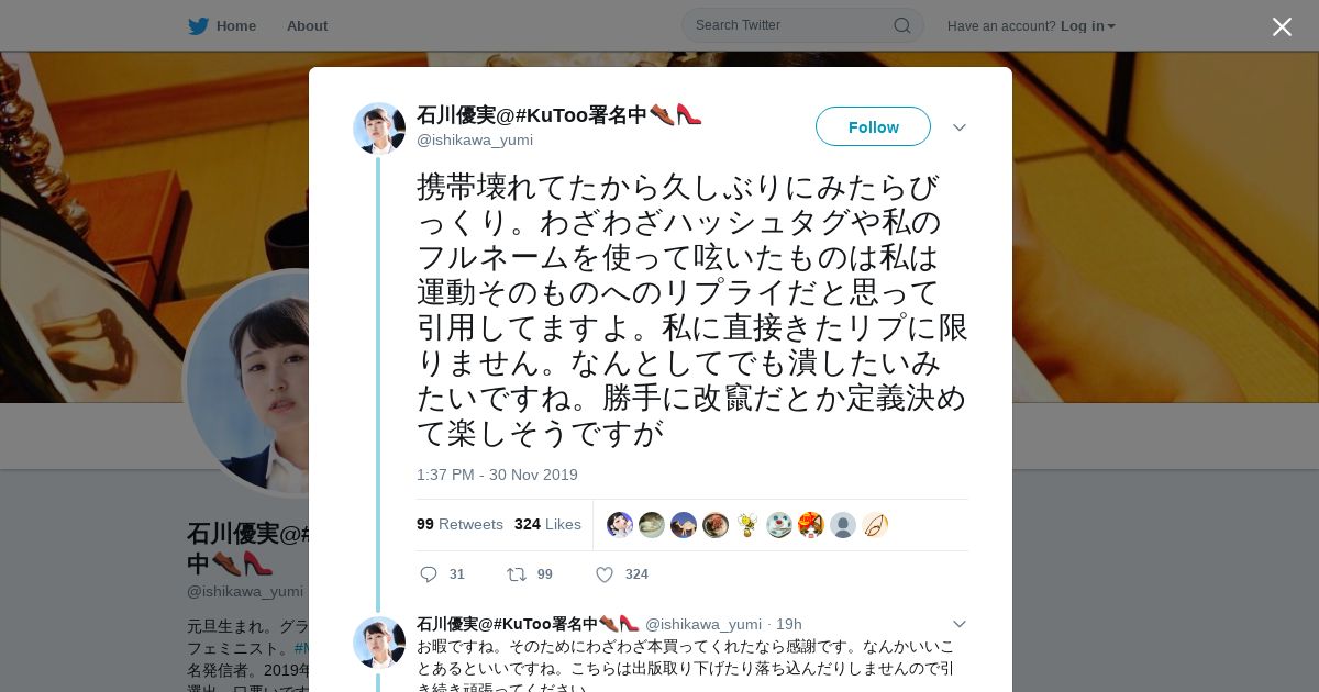 https://twitter.com:443/ishikawa_yumi/status/1200891691663642624