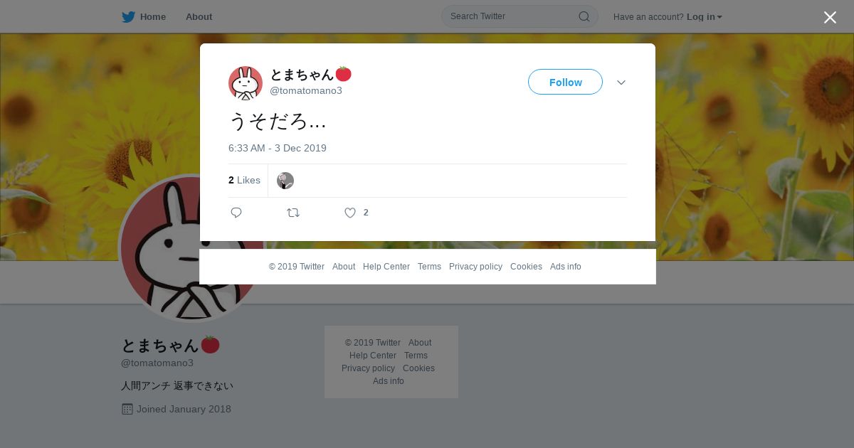 取得元URL: https://twitter.com:443/tomatomano3/status/1201872156524777480