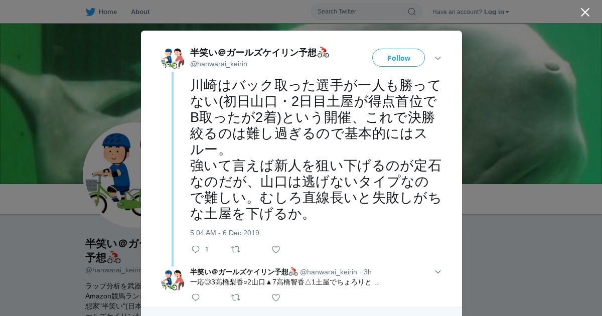 https://twitter.com:443/hanwarai_keirin/status/1202936729696497665