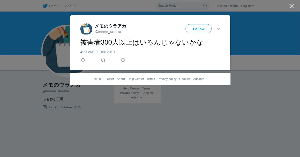 取得元URL: https://twitter.com:443/memo_uraaka/status/1201838982289477632