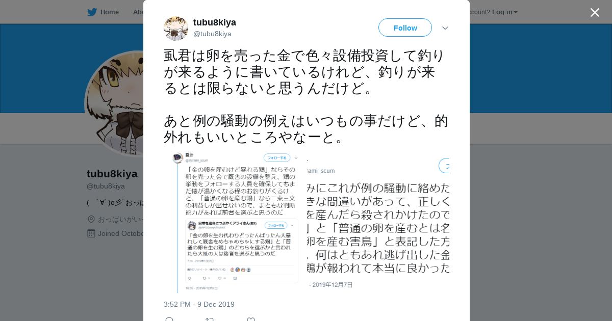 取得元URL: https://twitter.com:443/tubu8kiya/status/1204186977018335232