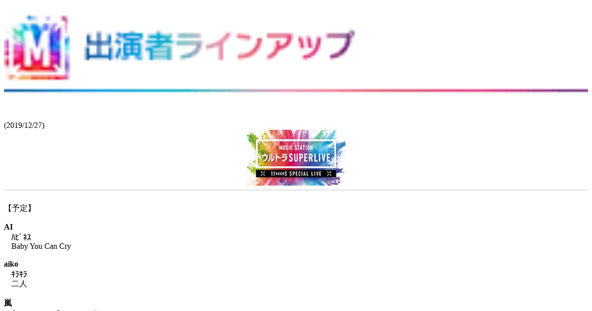 取得元URL: https://www.tv-asahi.co.jp:443/music/mb/ultrasuperlive2019/lineup.html
