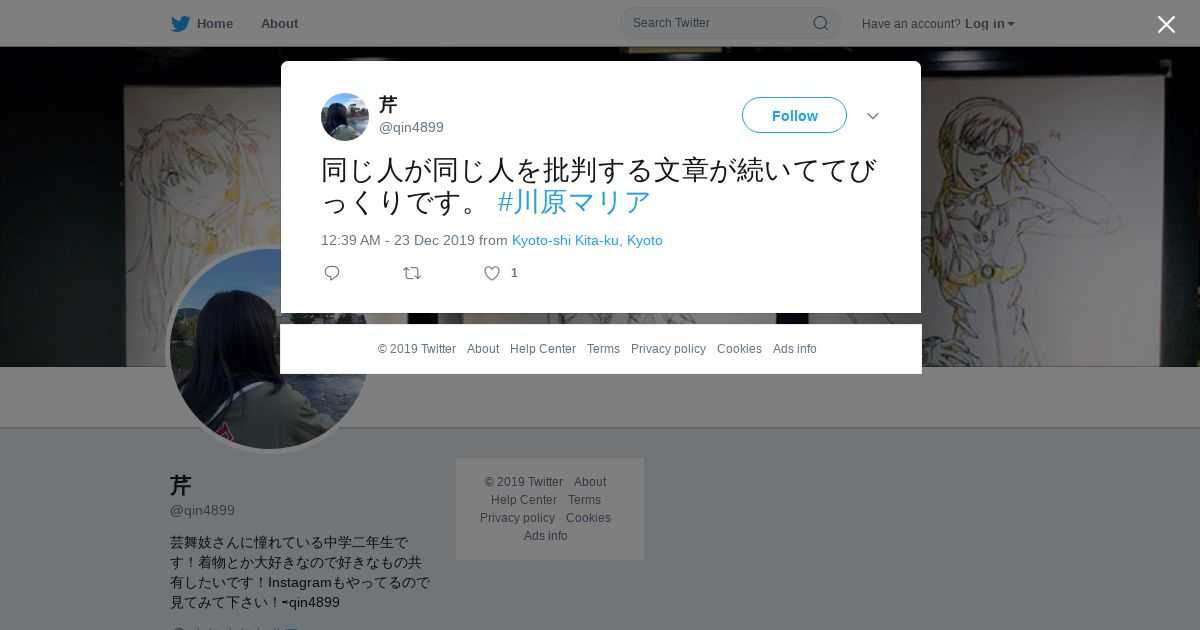 取得元URL: https://twitter.com:443/qin4899/status/1209030746762907648