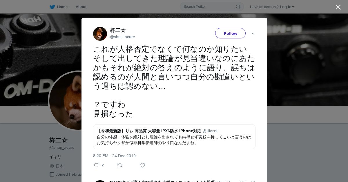 取得元URL: https://twitter.com:443/shuji_acure/status/1209690374421106688
