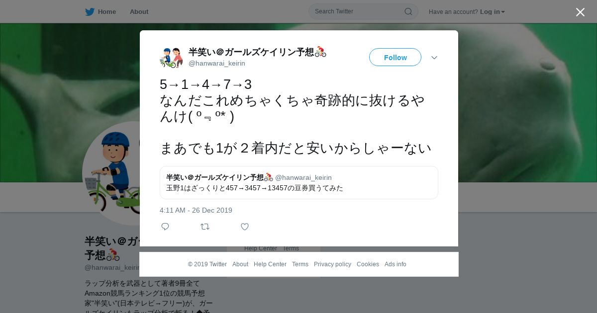 https://twitter.com:443/hanwarai_keirin/status/1210171288985096197