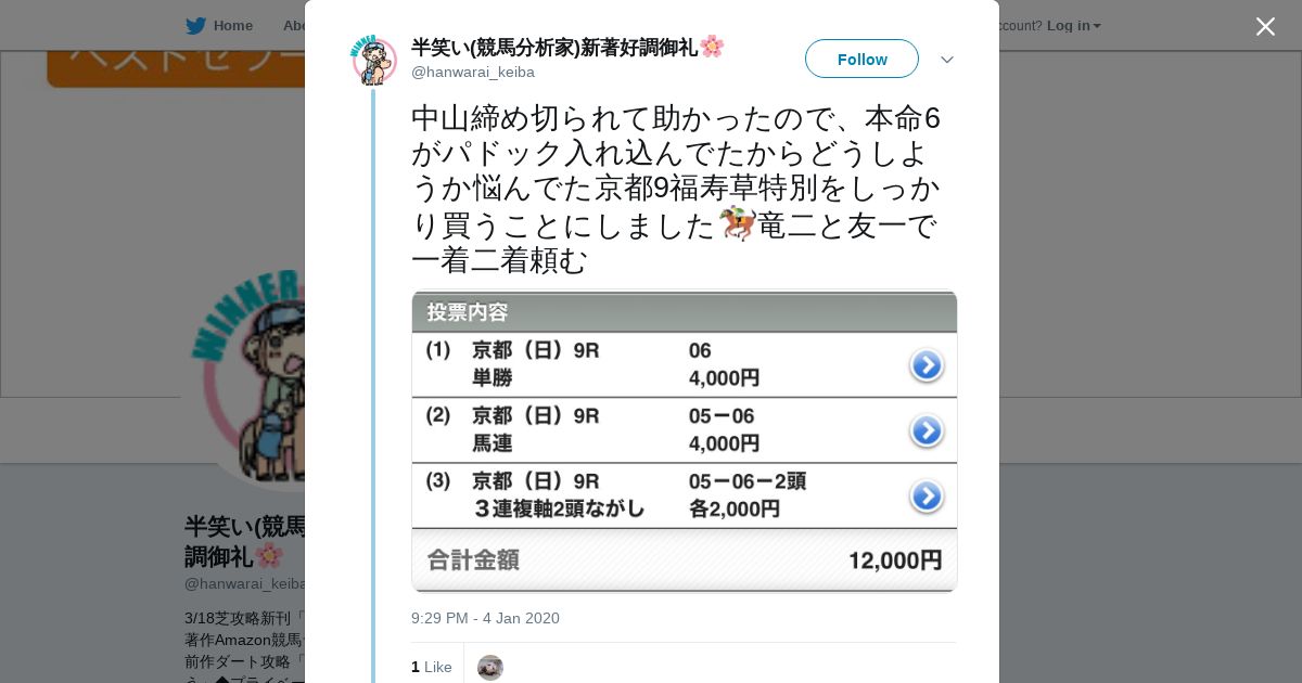 https://twitter.com:443/hanwarai_keiba/status/1213694027503005697