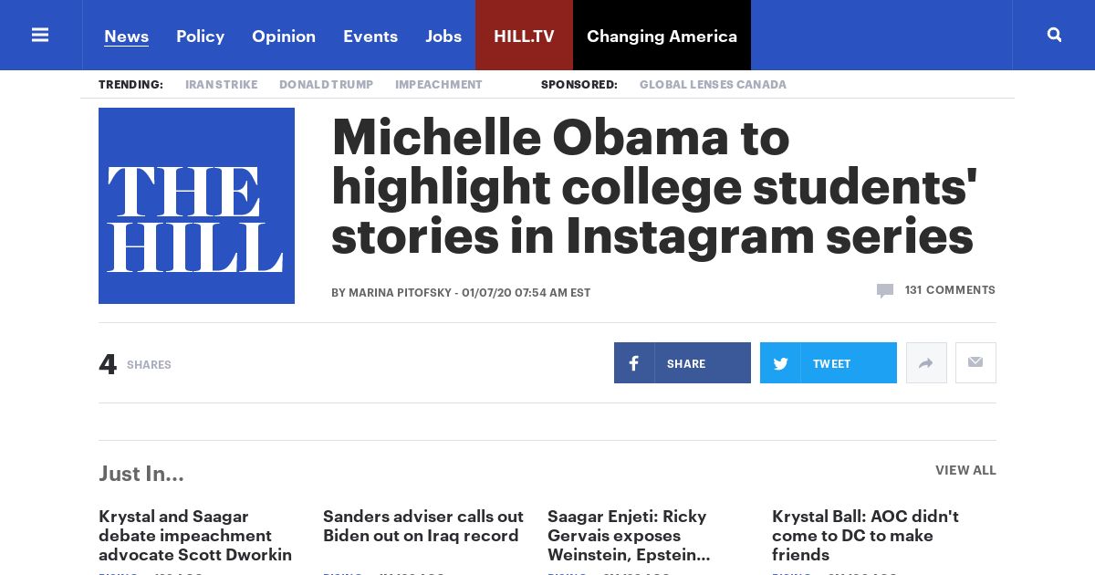 https://thehill.com:443/blogs/blog-briefing-room/news/477073-michelle-obama-to-highlight-college-students-stories-in