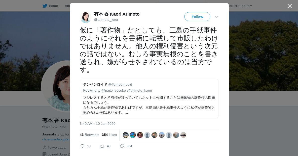 取得元URL: https://twitter.com:443/arimoto_kaori/status/1215644613072941060