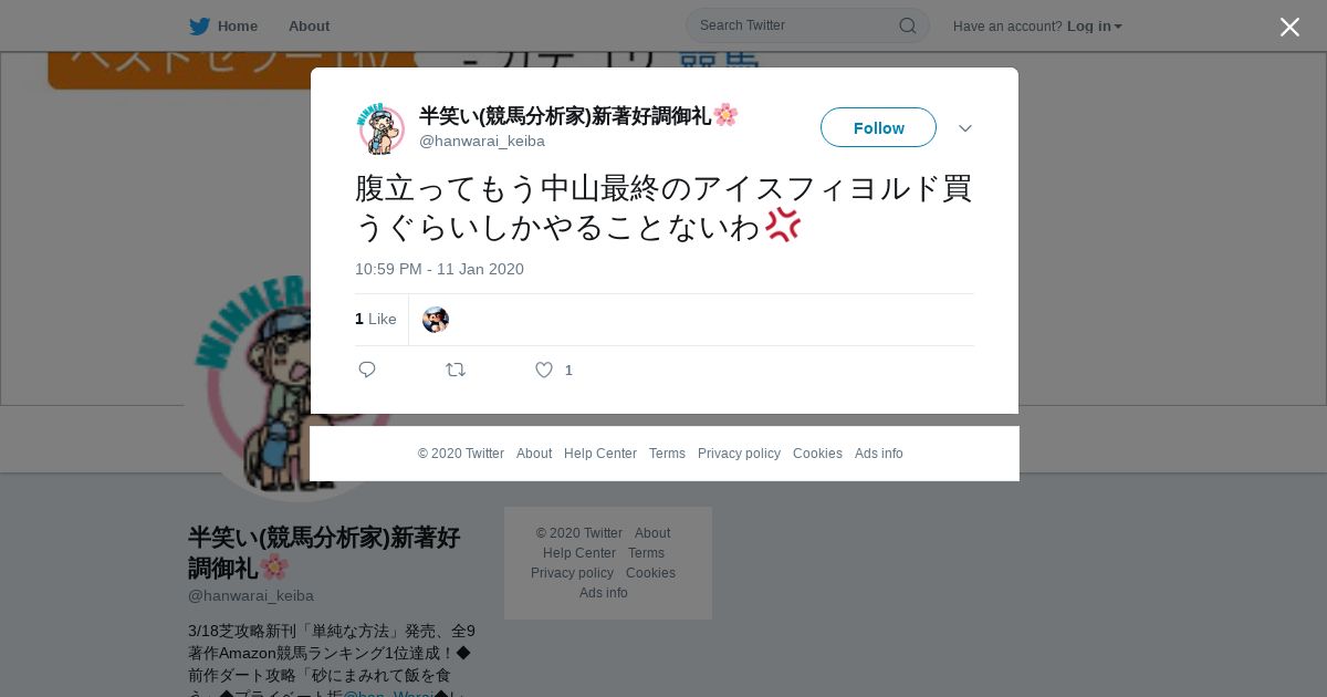 https://twitter.com:443/hanwarai_keiba/status/1216253342239772672