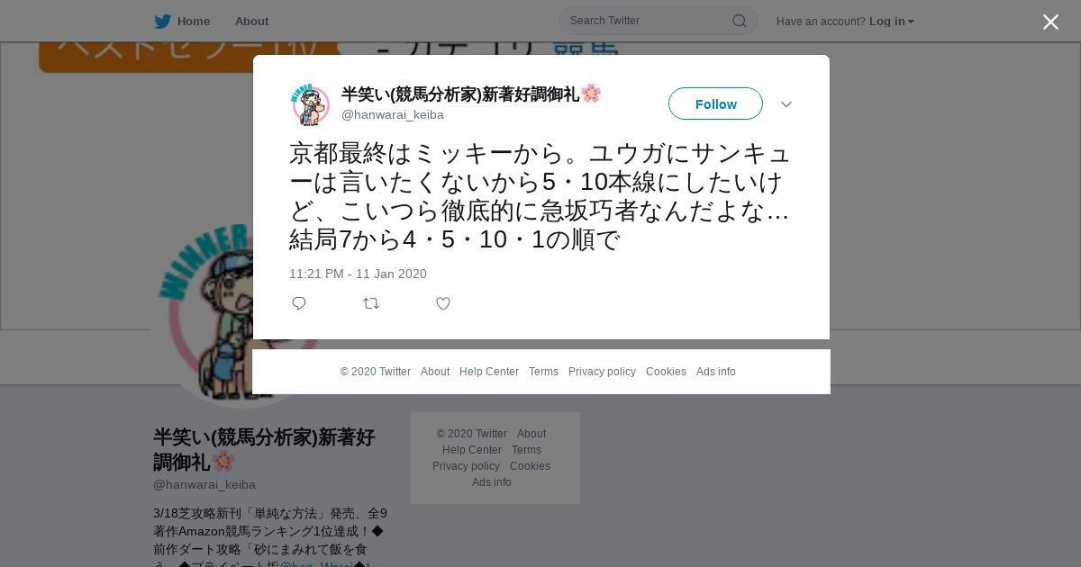 https://twitter.com:443/hanwarai_keiba/status/1216258771975954434
