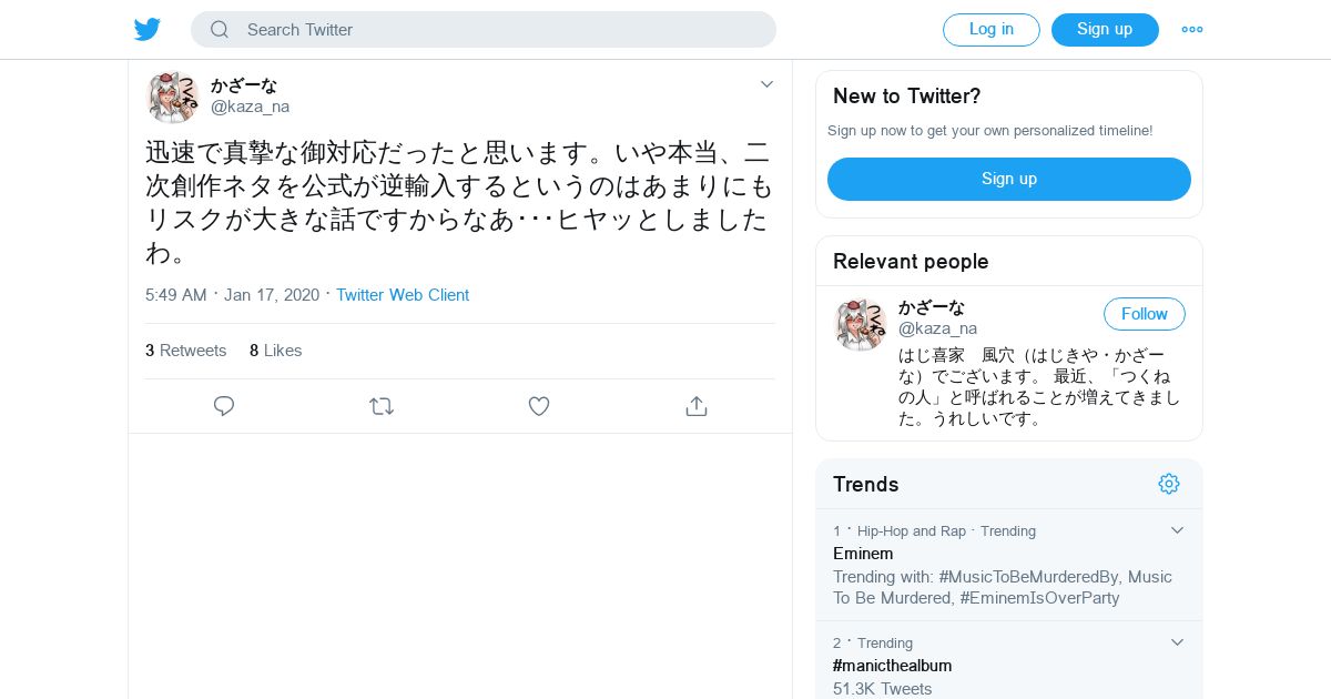 取得元URL: https://twitter.com:443/kaza_na/status/1218047656380923904