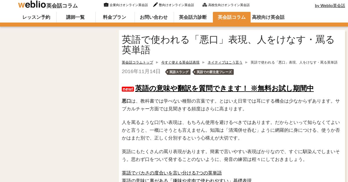 https://eikaiwa.weblio.jp:443/column/phrases/natural_english/english-vilification