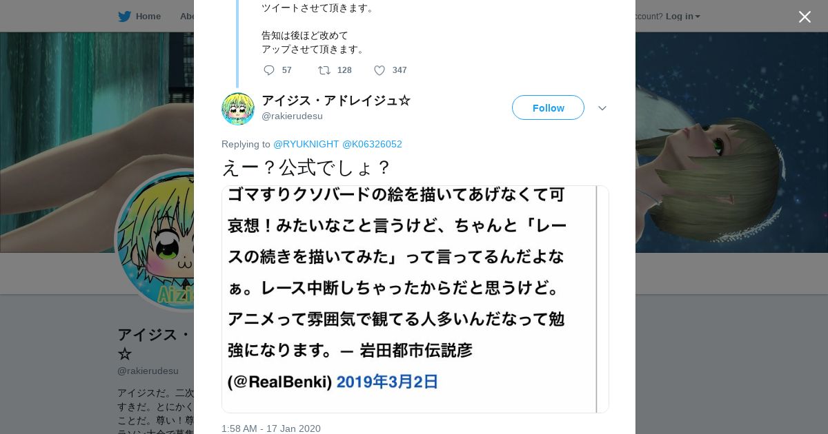 https://twitter.com:443/rakierudesu/status/1218110305324060673