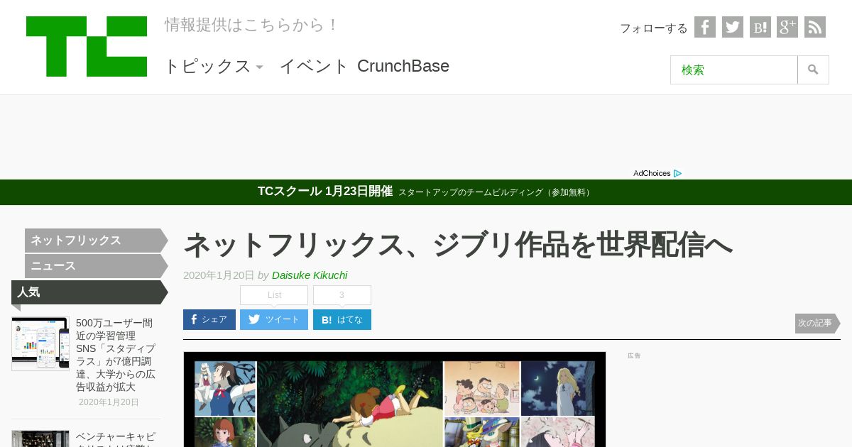 https://jp.techcrunch.com:443/2020/01/20/netflix-ghibli/