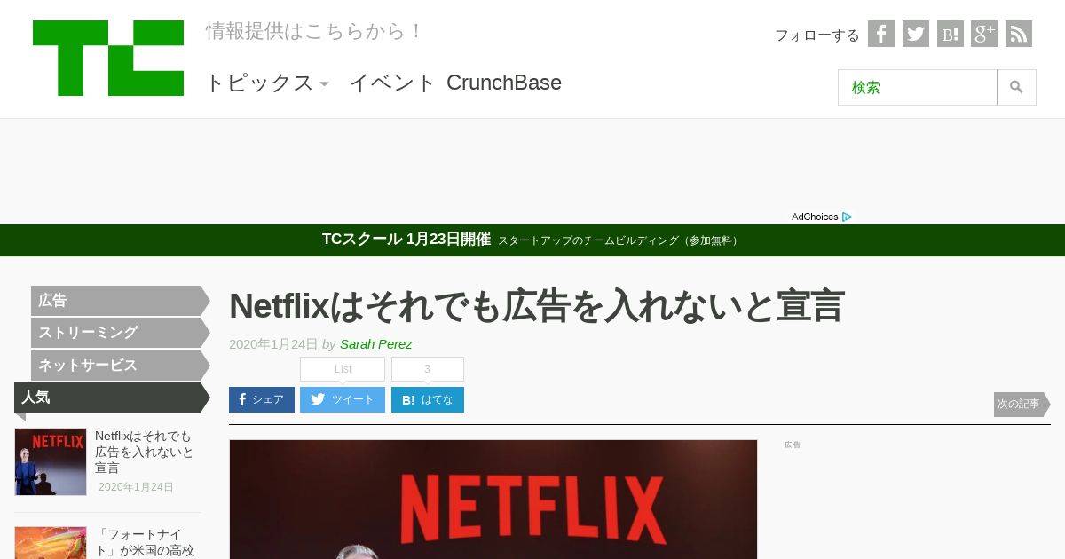 https://jp.techcrunch.com:443/2020/01/24/2020-01-22-netflix-is-still-saying-no-to-ads/