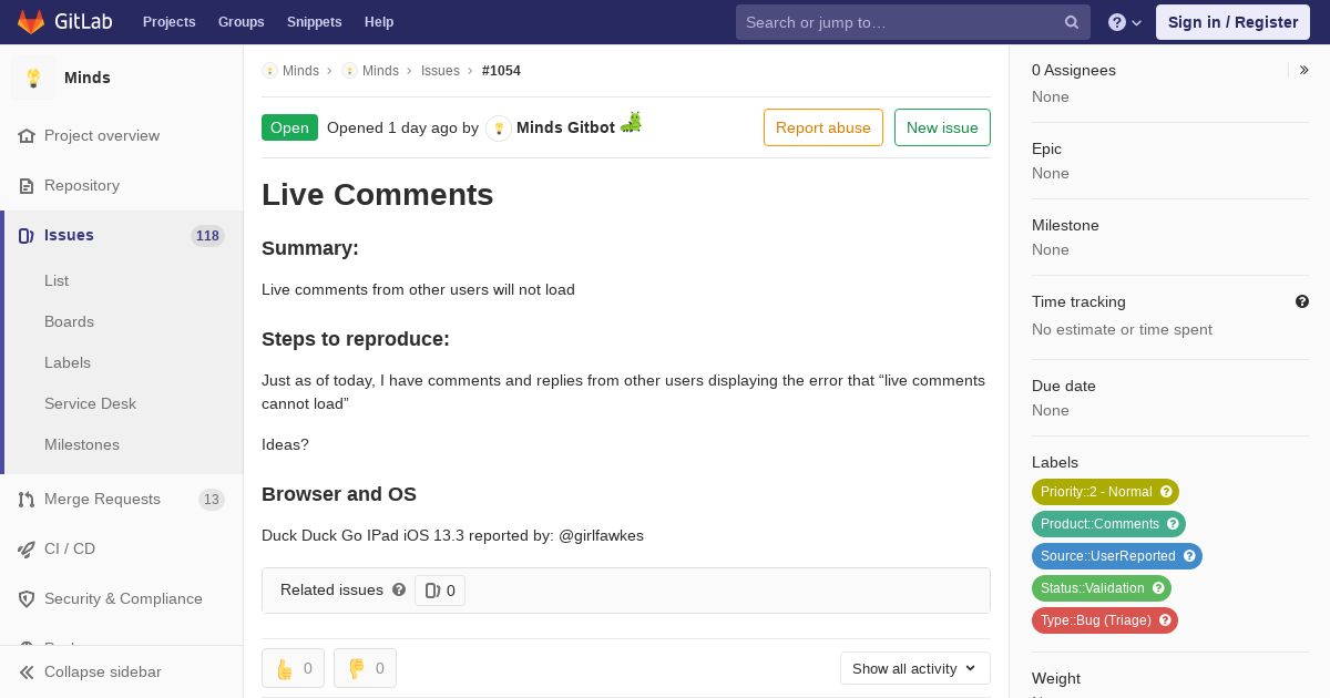 https://gitlab.com:443/minds/minds/issues/1054
