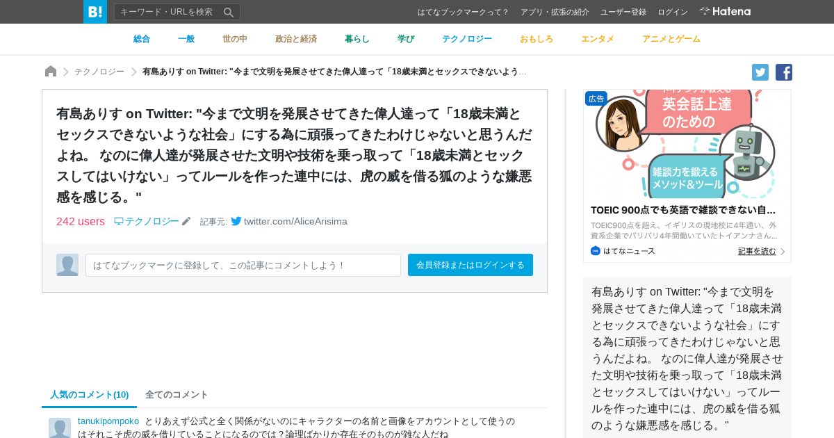 https://b.hatena.ne.jp:443/entry/s/twitter.com/AliceArisima/status/1221609125940875264