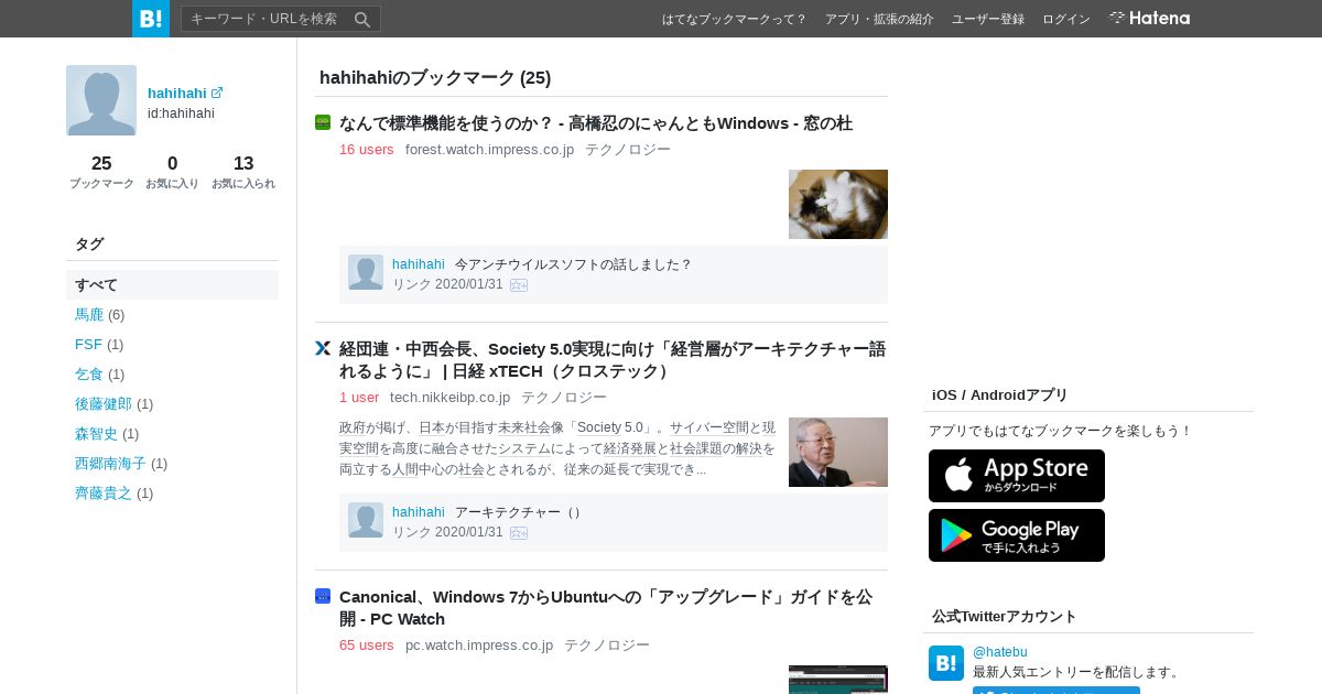 https://b.hatena.ne.jp:443/hahihahi/