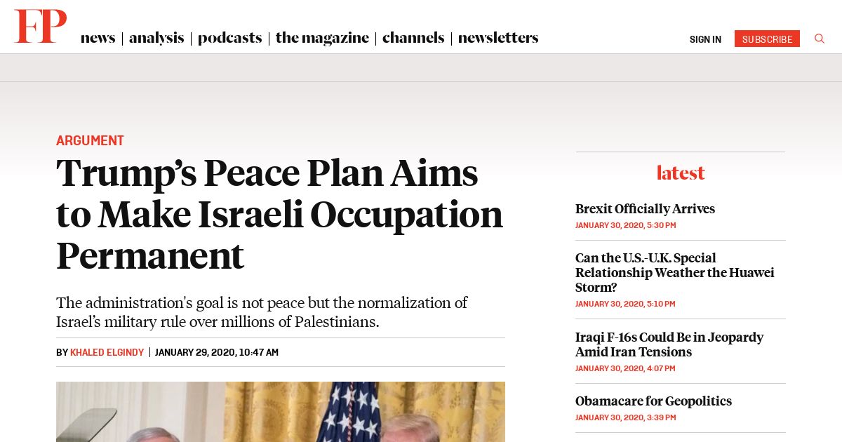 取得元URL: https://foreignpolicy.com:443/2020/01/29/trump-middle-east-peace-plan-trojan-horse-israel-occupation-permanent/