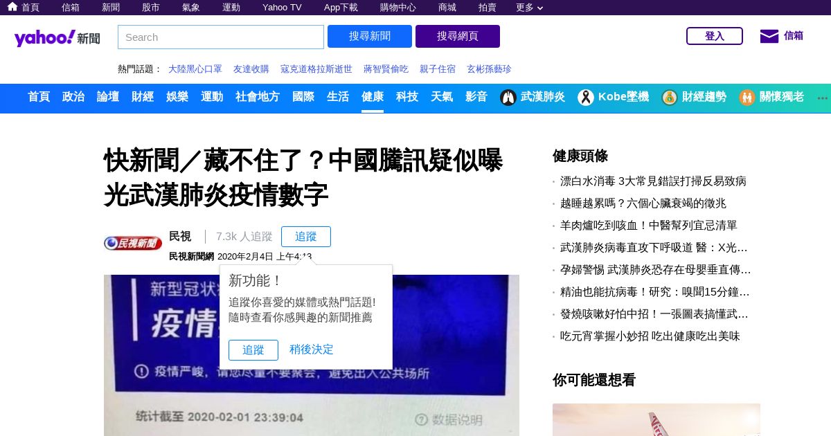 https://tw.news.yahoo.com:443/%E5%BF%AB%E6%96%B0%E8%81%9E-%E8%97%8F%E4%B8%8D%E4%BD%8F%E4%BA%86-%E4%B8%AD%E5%9C%8B%E9%A8%B0%E8%A8%8A%E7%96%91%E4%BC%BC%E6%9B%9D%E5%85%89%E6%AD%A6%E6%BC%A2%E8%82%BA%E7%82%8E%E7%96%AB%E6%83%85%E6%95%B8%E5%AD%97-041349411.html