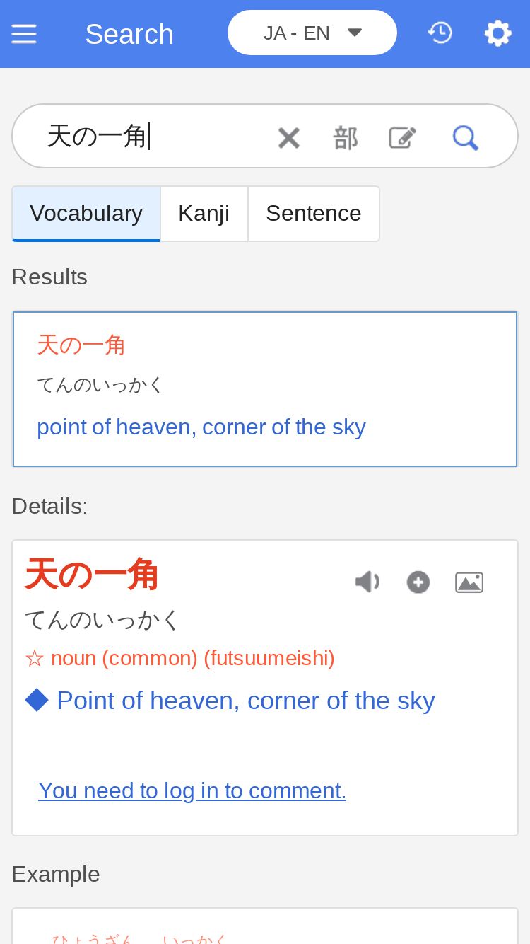 https://mazii.net:443/search?dict=jaen&query=%E5%A4%A9%E3%81%AE%E4%B8%80%E8%A7%92