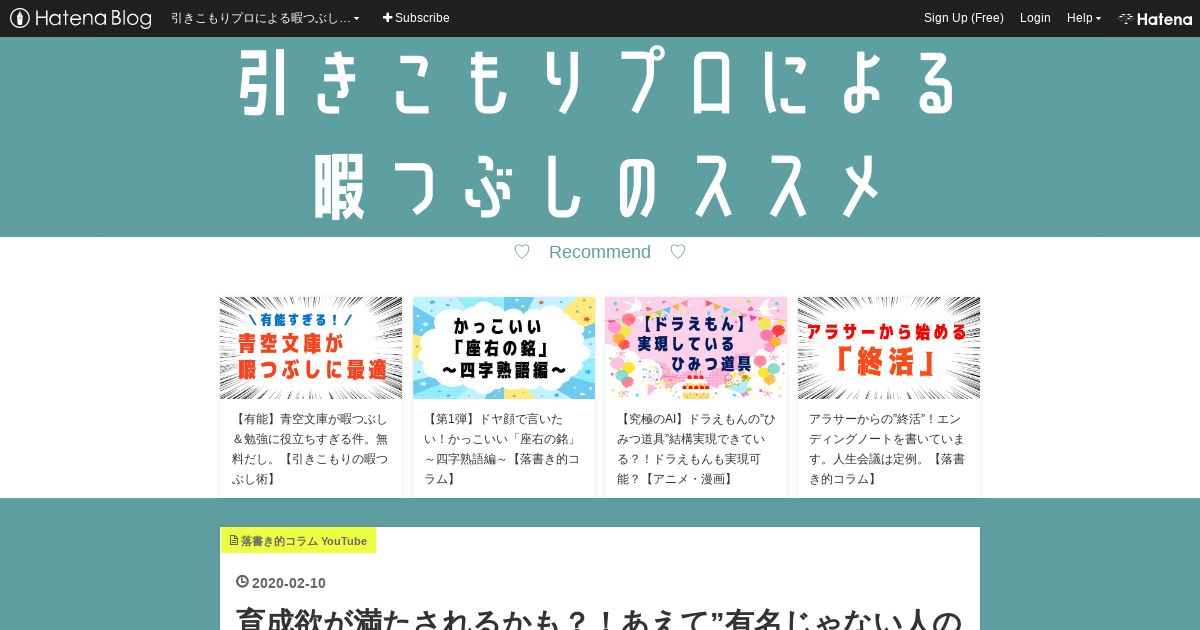 https://www.himatsubushipro.work:443/entry/2020/02/10/200000