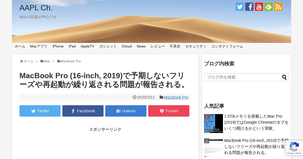 https://applech2.com:443/archives/20200211-macbook-pro-16-inch-2019-freezes-randomly-and-restarts.html