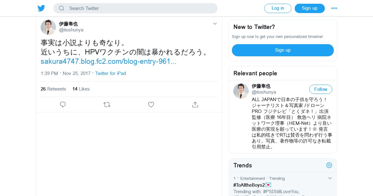 取得元URL: https://twitter.com:443/itoshunya/status/934416159876702209