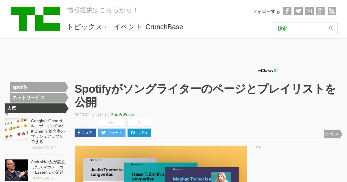 https://jp.techcrunch.com:443/2020/02/14/2020-02-12-spotify-is-giving-songwriters-their-own-pages-and-playlists/