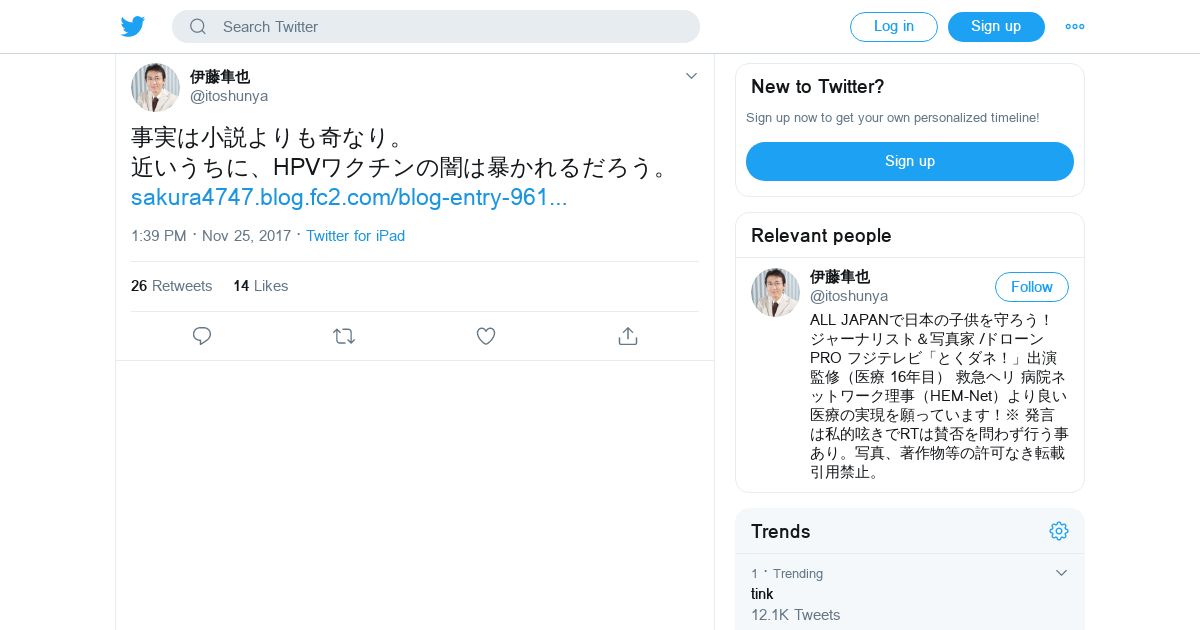 取得元URL: https://twitter.com:443/itoshunya/status/934416159876702209