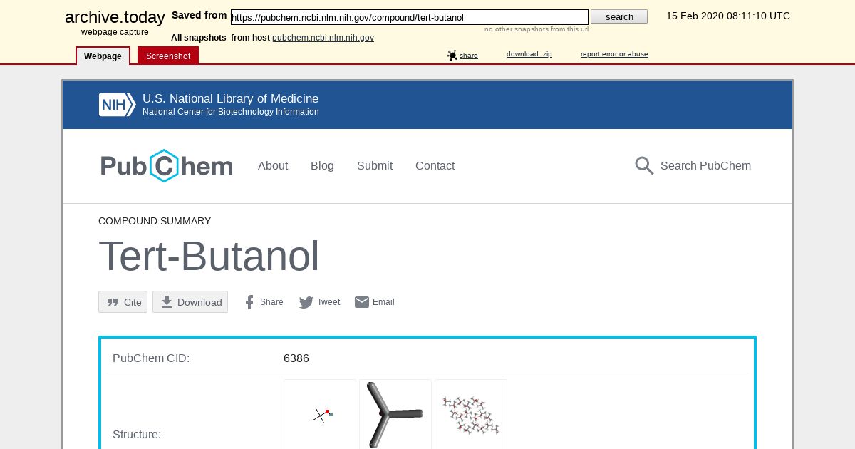 http://archive.today/2020.02.15-081110/https://pubchem.ncbi.nlm.nih.gov/compound/tert-butanol
