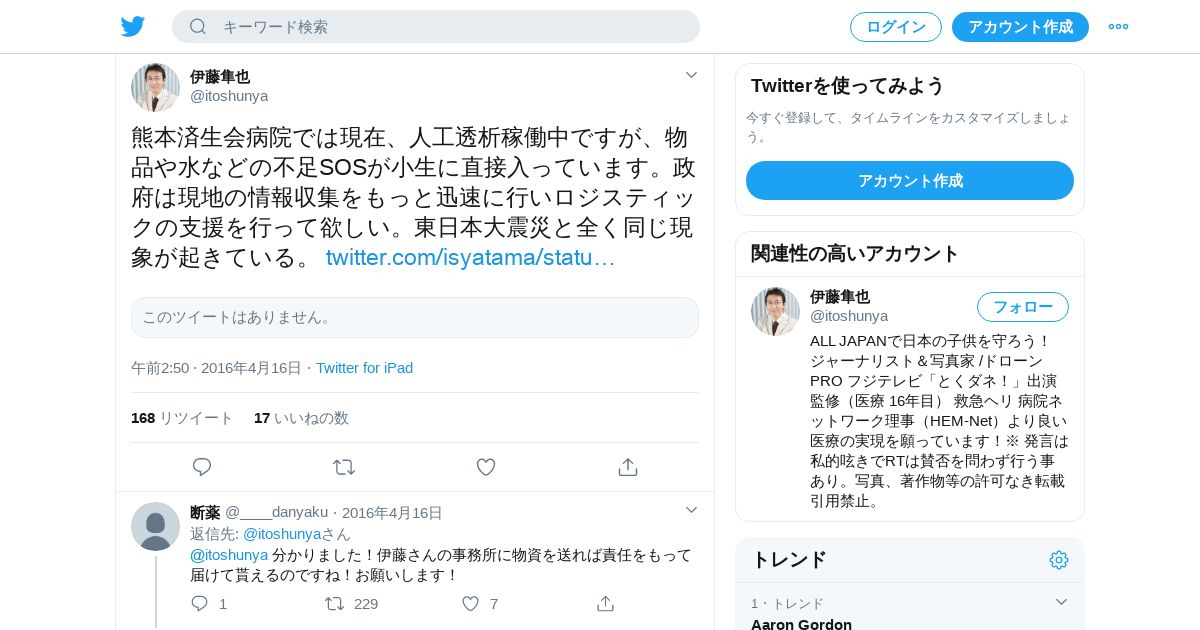 取得元URL: https://twitter.com:443/itoshunya/status/721168849538646016