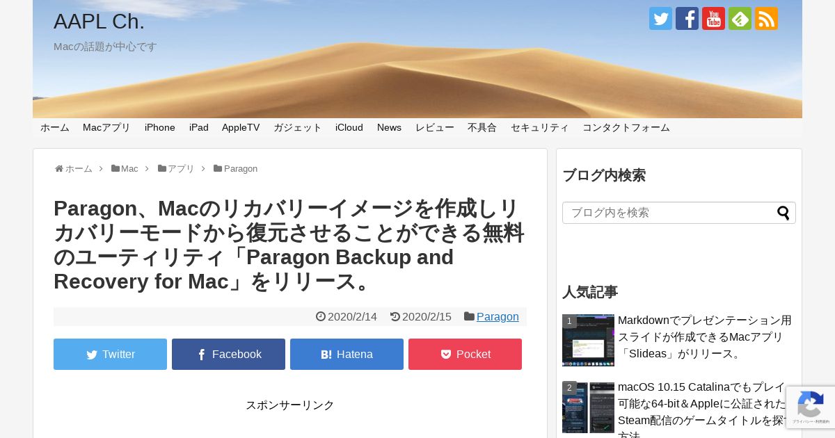 https://applech2.com:443/archives/20200214-paragon-backup-and-recovery-for-mac-now-available.html