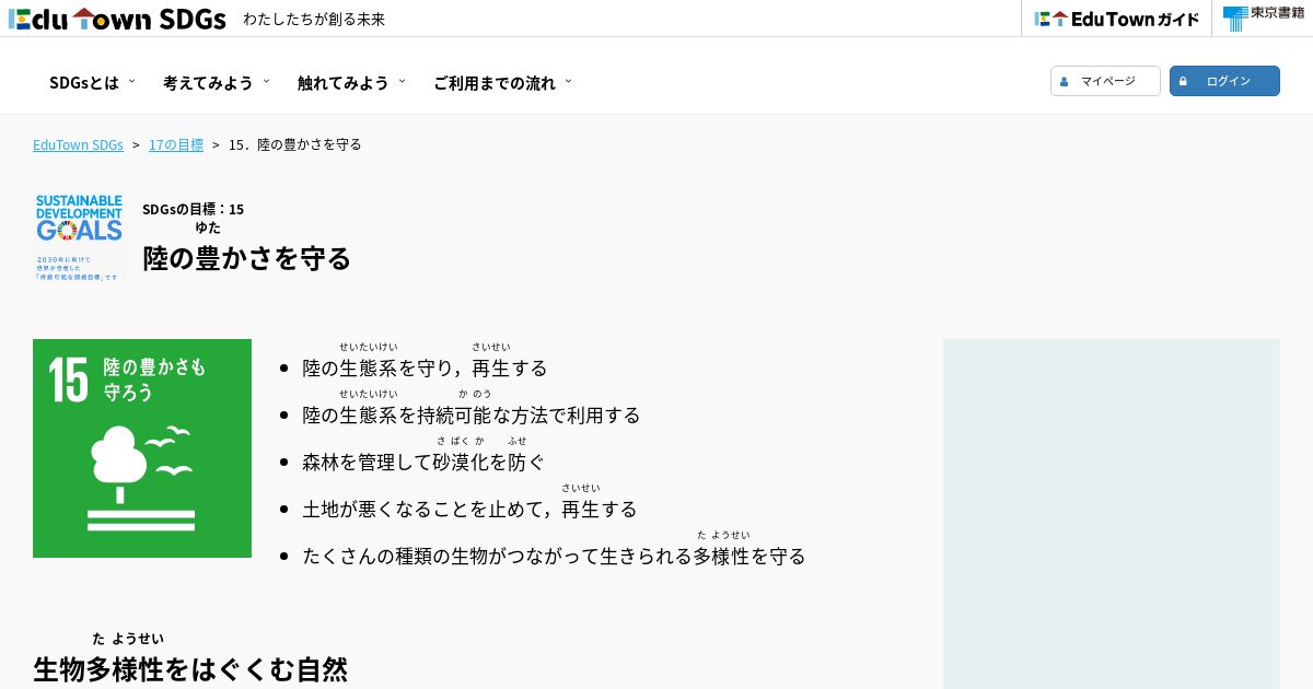 取得元URL: https://sdgs.edutown.jp:443/info/goals/goals-15.html