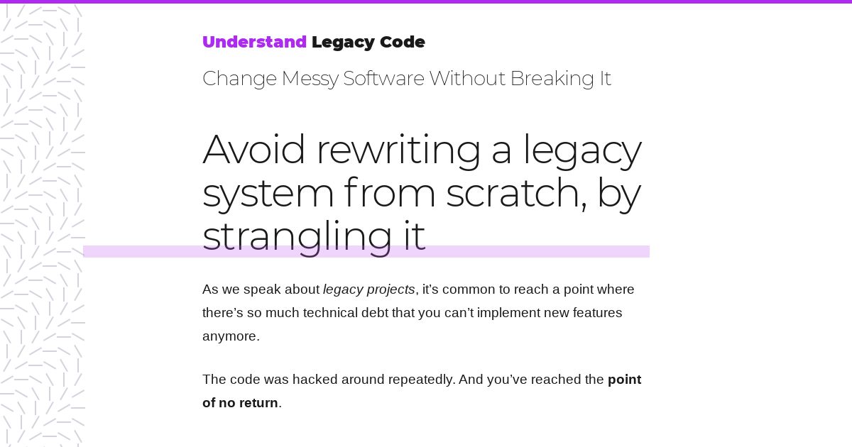 https://understandlegacycode.com:443/blog/avoid-rewriting-a-legacy-system-from-scratch-by-strangling-it/