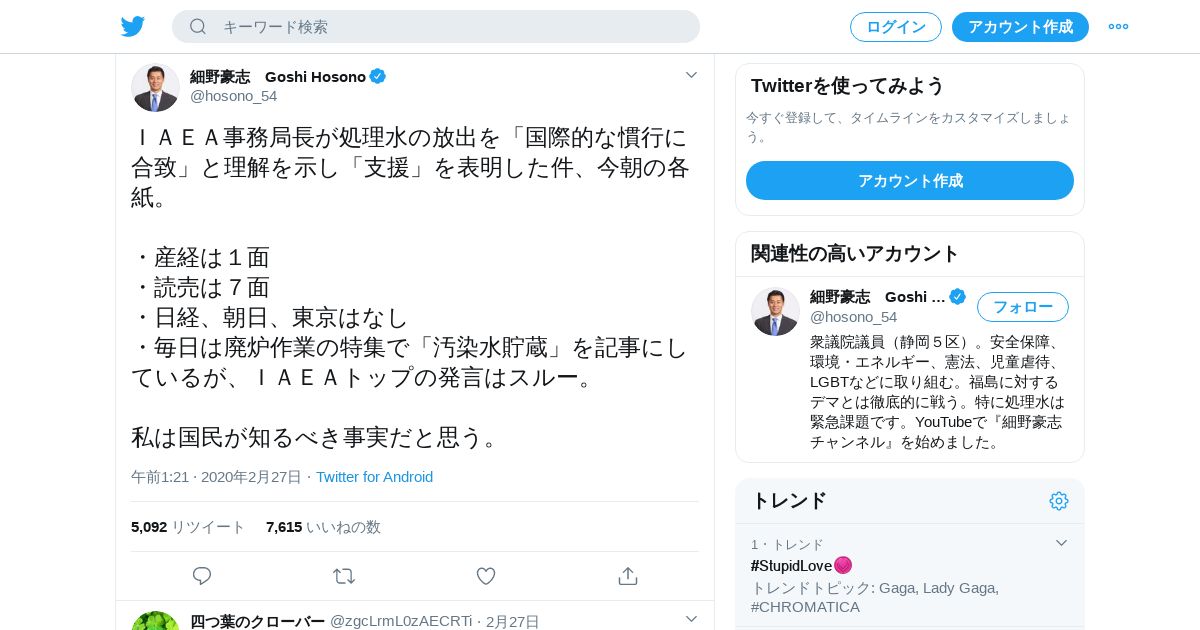 取得元URL: https://twitter.com:443/hosono_54/status/1232838115468824579