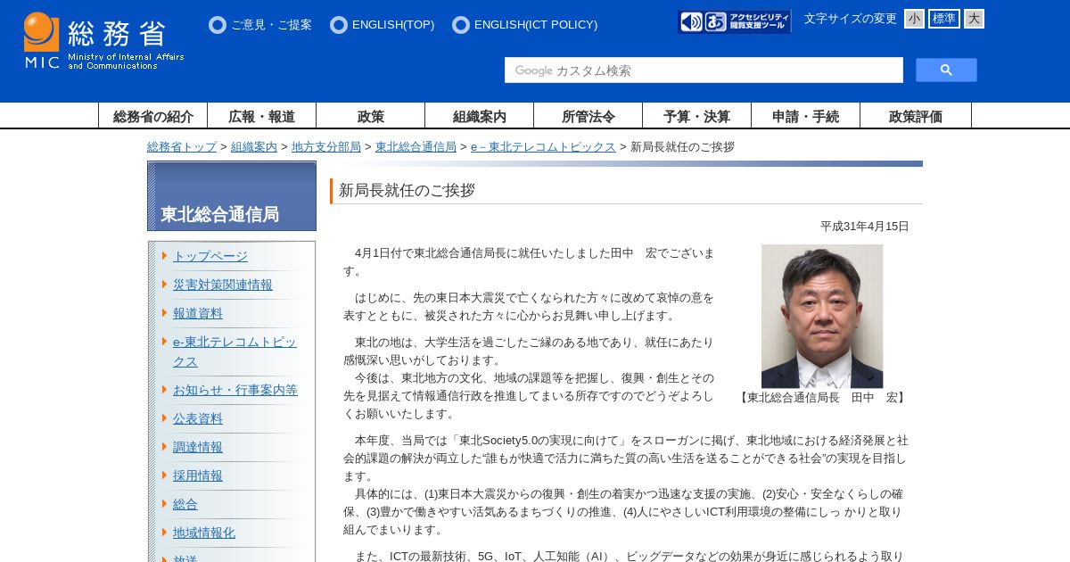 https://www.soumu.go.jp:443/soutsu/tohoku/kohoshi/h310410syuuninnaisatu.html