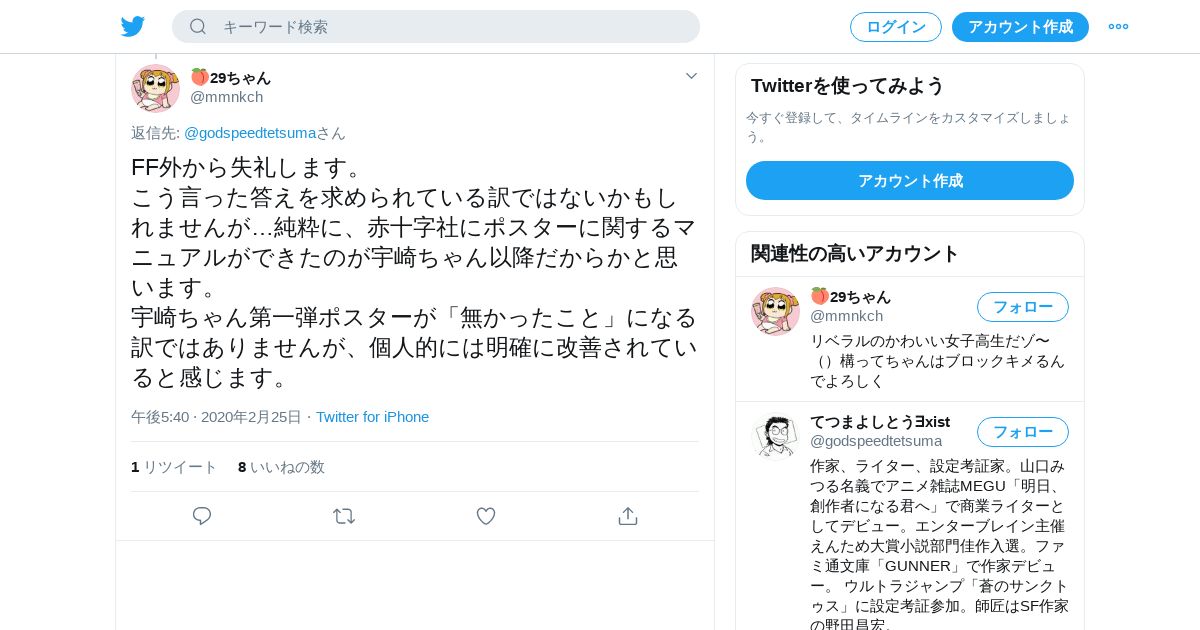 取得元URL: https://twitter.com:443/mmnkch/status/1232359841391202305
